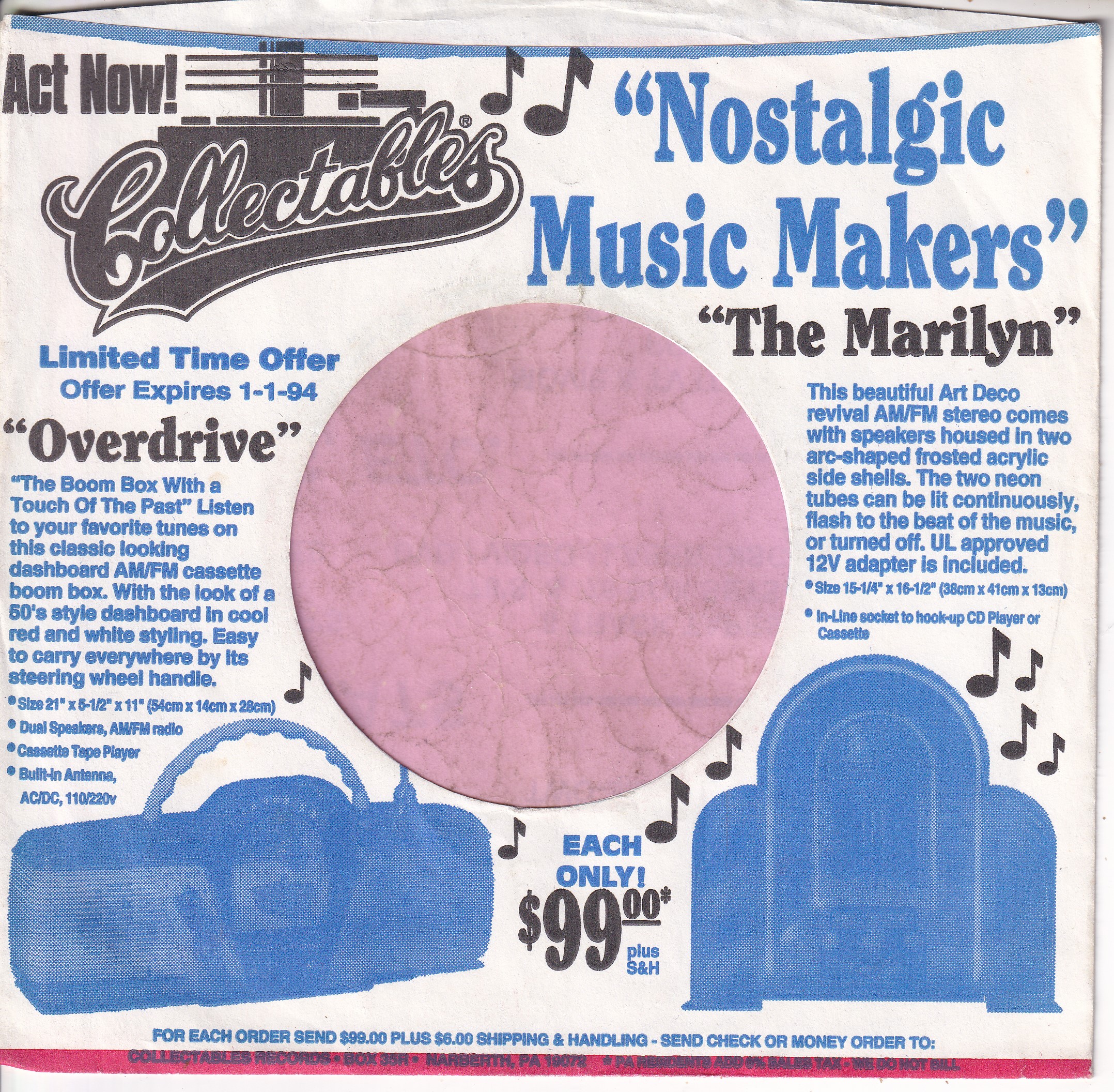 Collectables U.S.A. Nostalgic Music Makers Advert Collector Series 45’s Company Sleeve 1984 – 1993