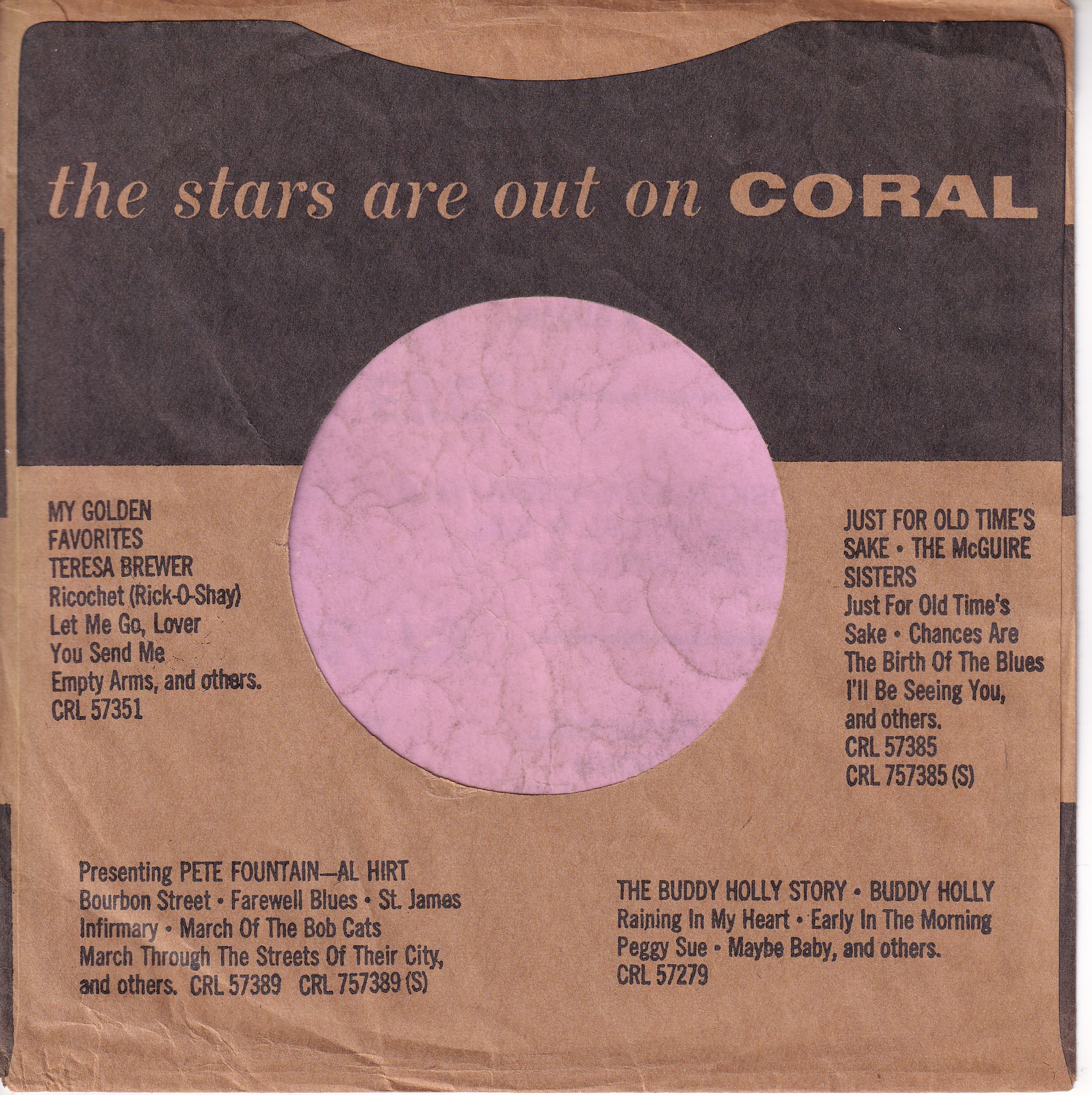 Home » US & UK Record Company SLEEVES & CARD COVERS » Coral Records U.S.A. Albums Listed 60-61 Company Sleeve 1962