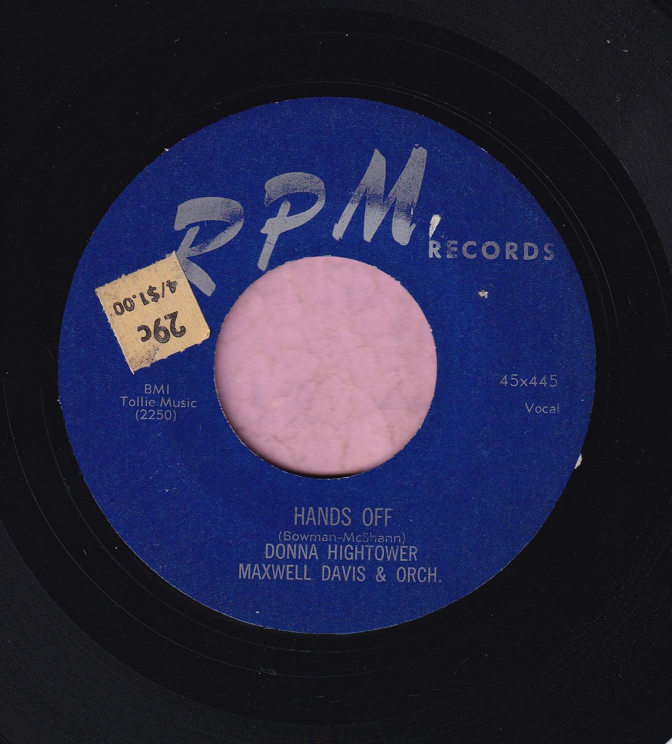Donna Hightower Maxwell Davis & Orch. ” Hands Off ” RPM Records Vg+