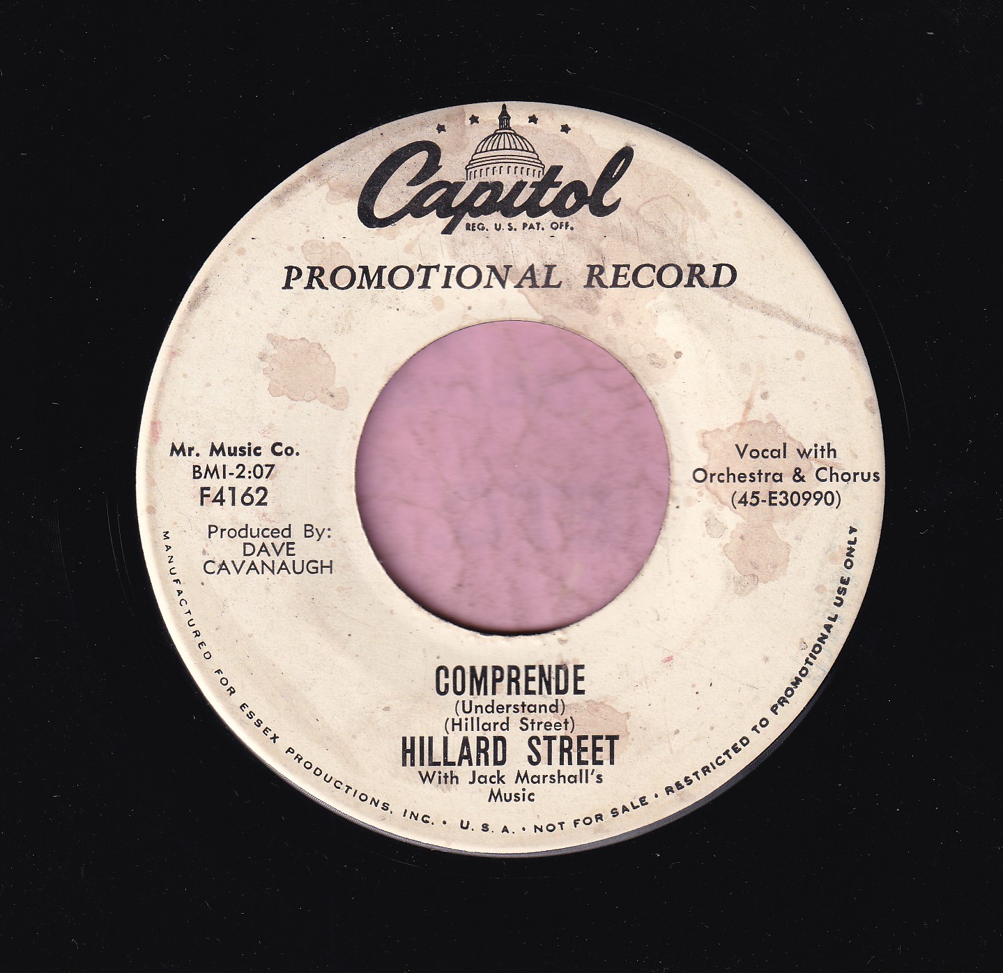 Hillard Street ” Comprende ” Capitol Records Demo Vg+