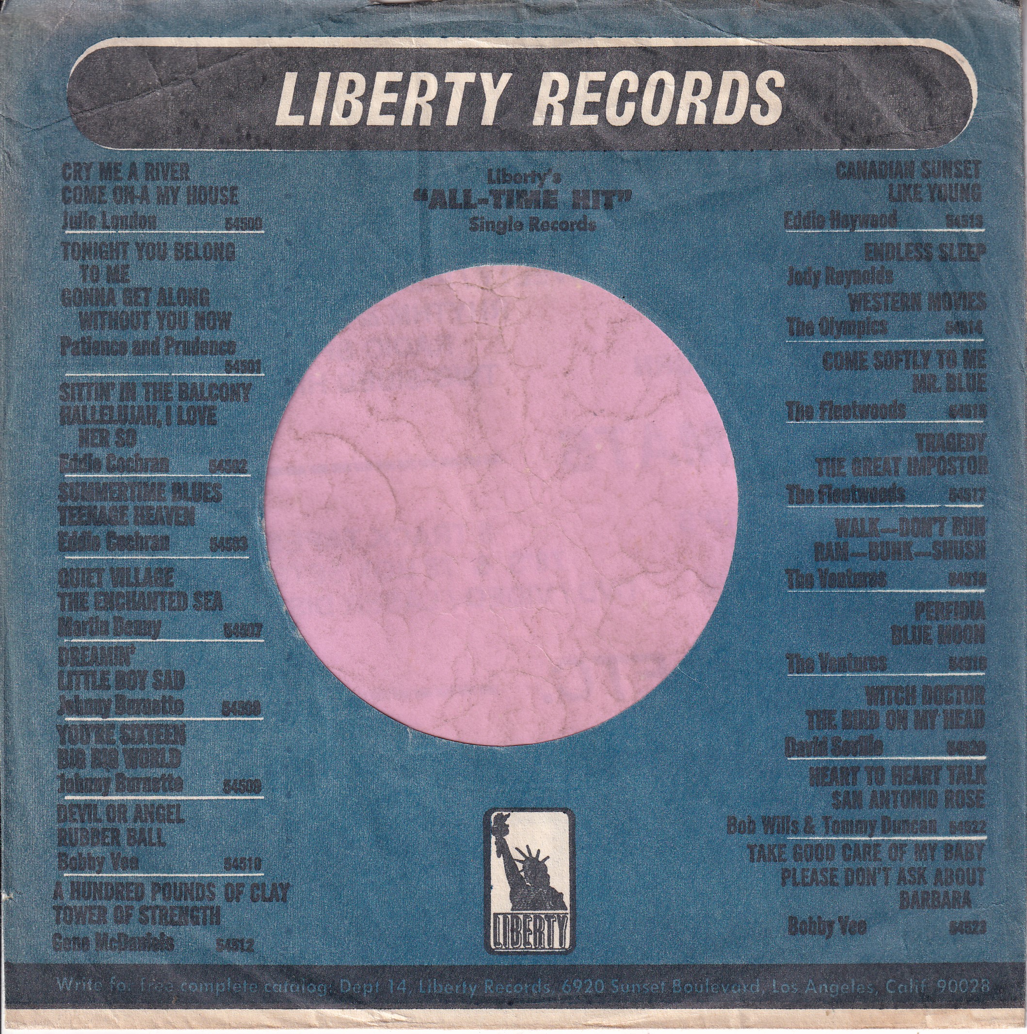 Liberty Records U.S.A. Cut Straight With A Notch Company Sleeve 1965 -1970