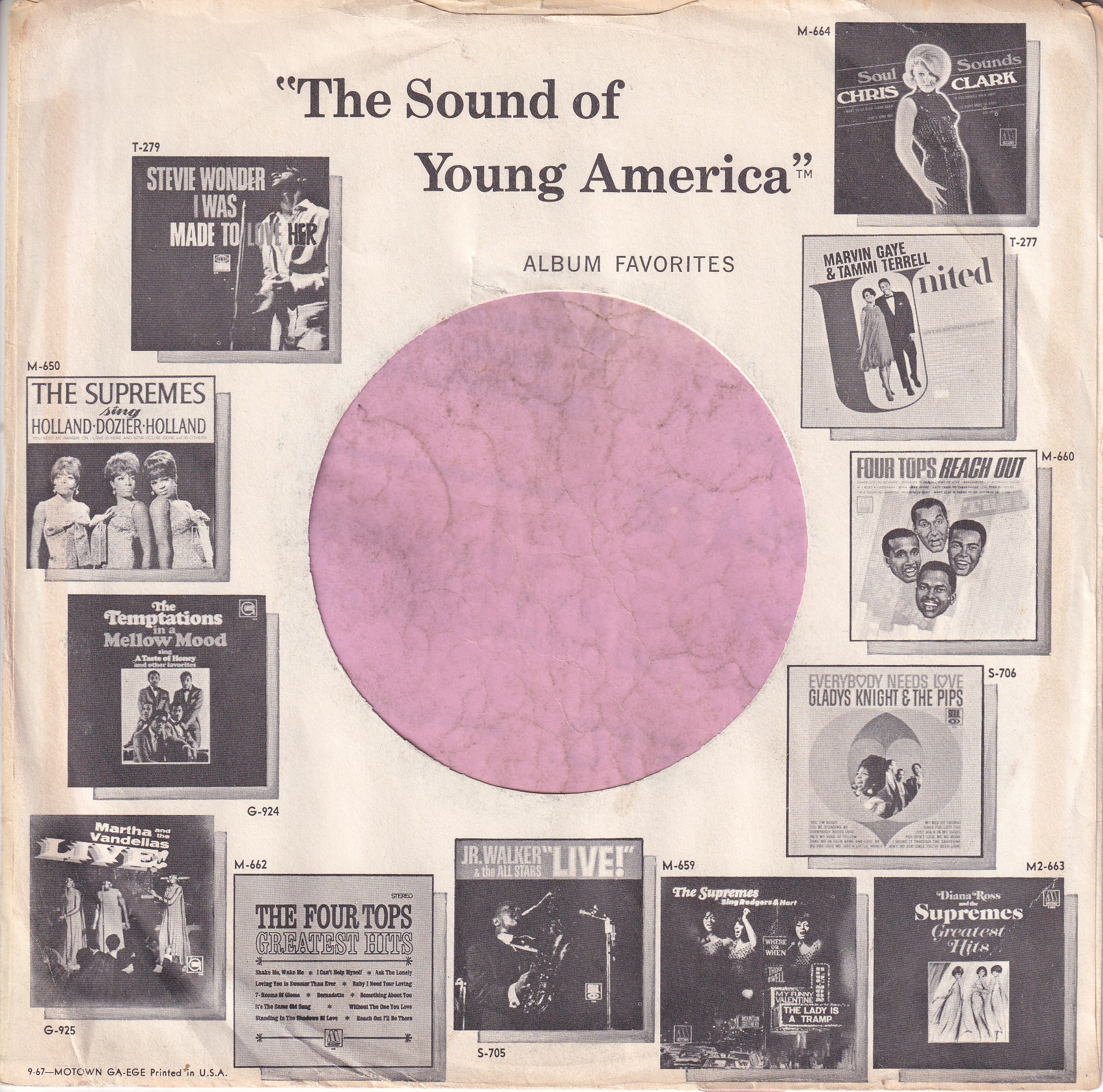 Motown U.S.A. Black Cut Straight With Notch On Front Company Sleeve 1967