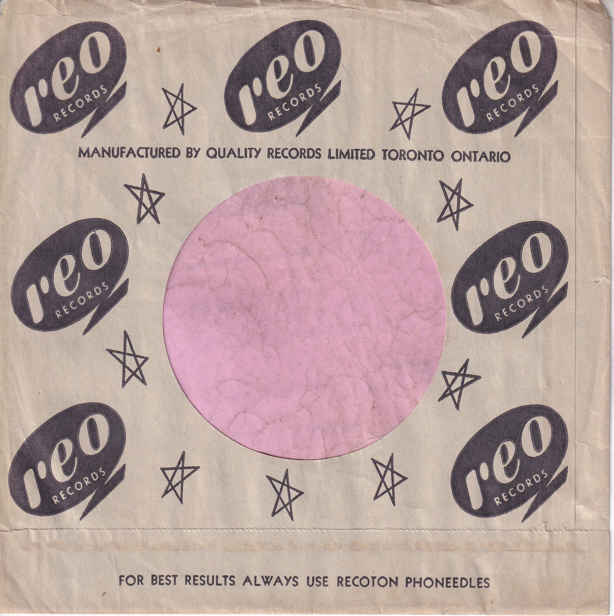 Reo Records Canadian Black Print On Grey Multi Oval Logo’s Company Sleeve