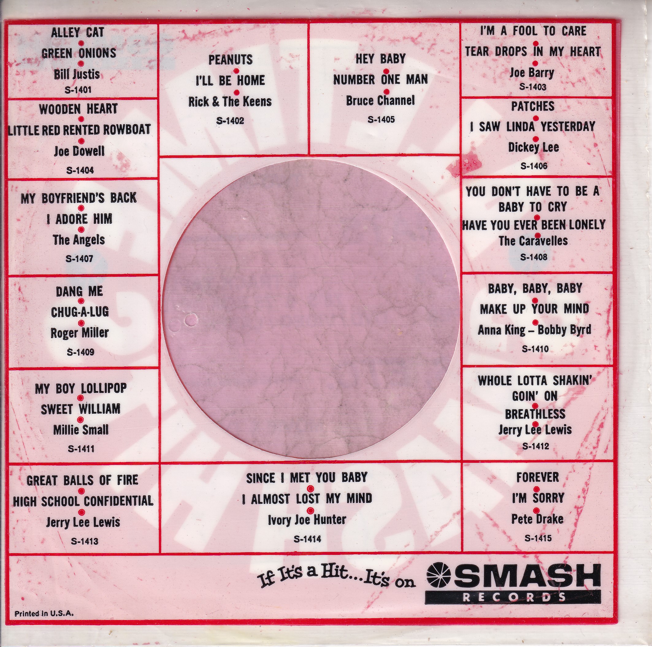 Home » LATEST ADDITIONS » Smash Records U.S.A. Used For Re-Issues , Plastic Bag Which Would Have Held A Record In Paper Sleeve Company Sleeve