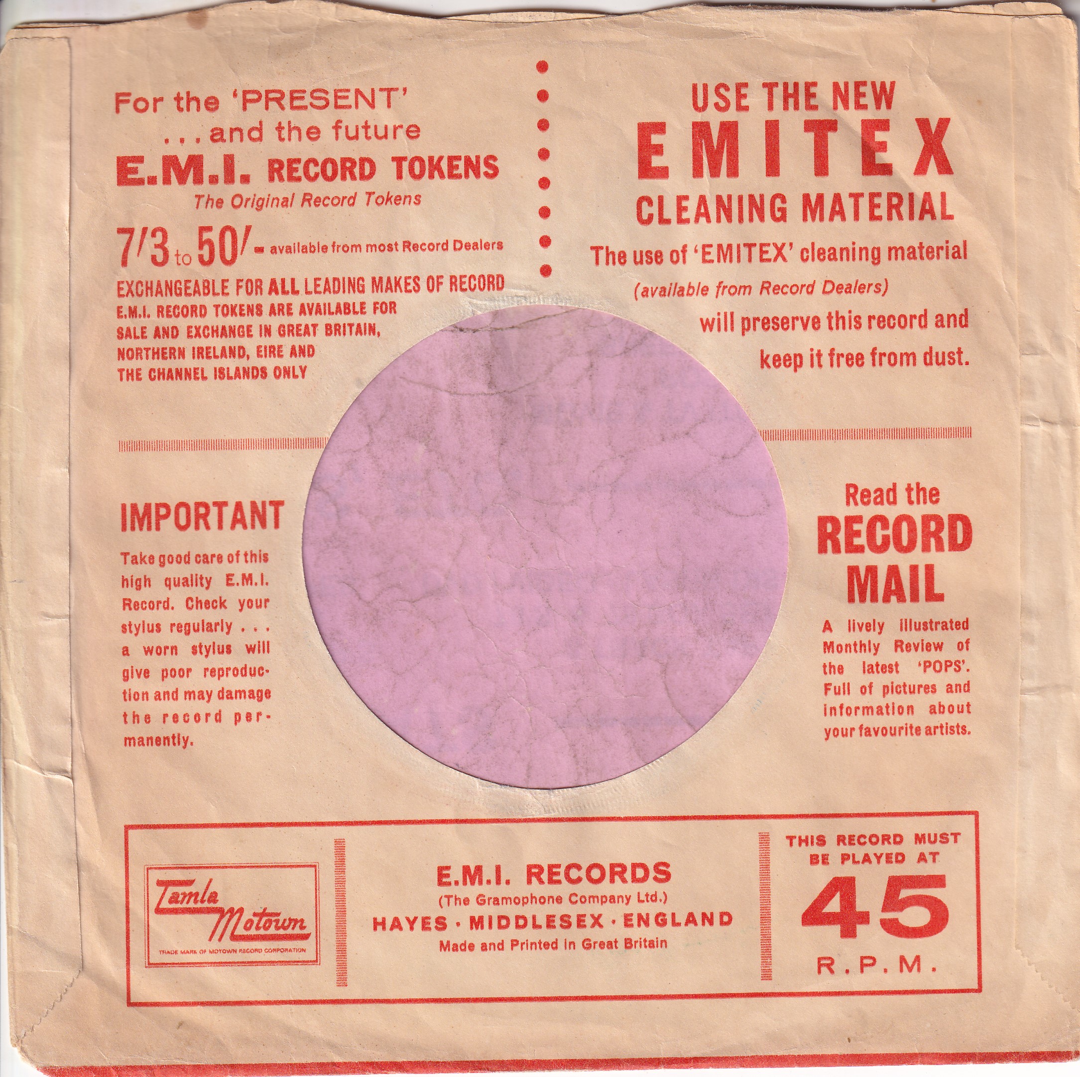 Tamla Motown U.K. 7’3 To 50 Tokens Glued L & R Company Sleeve 1965 – 1967