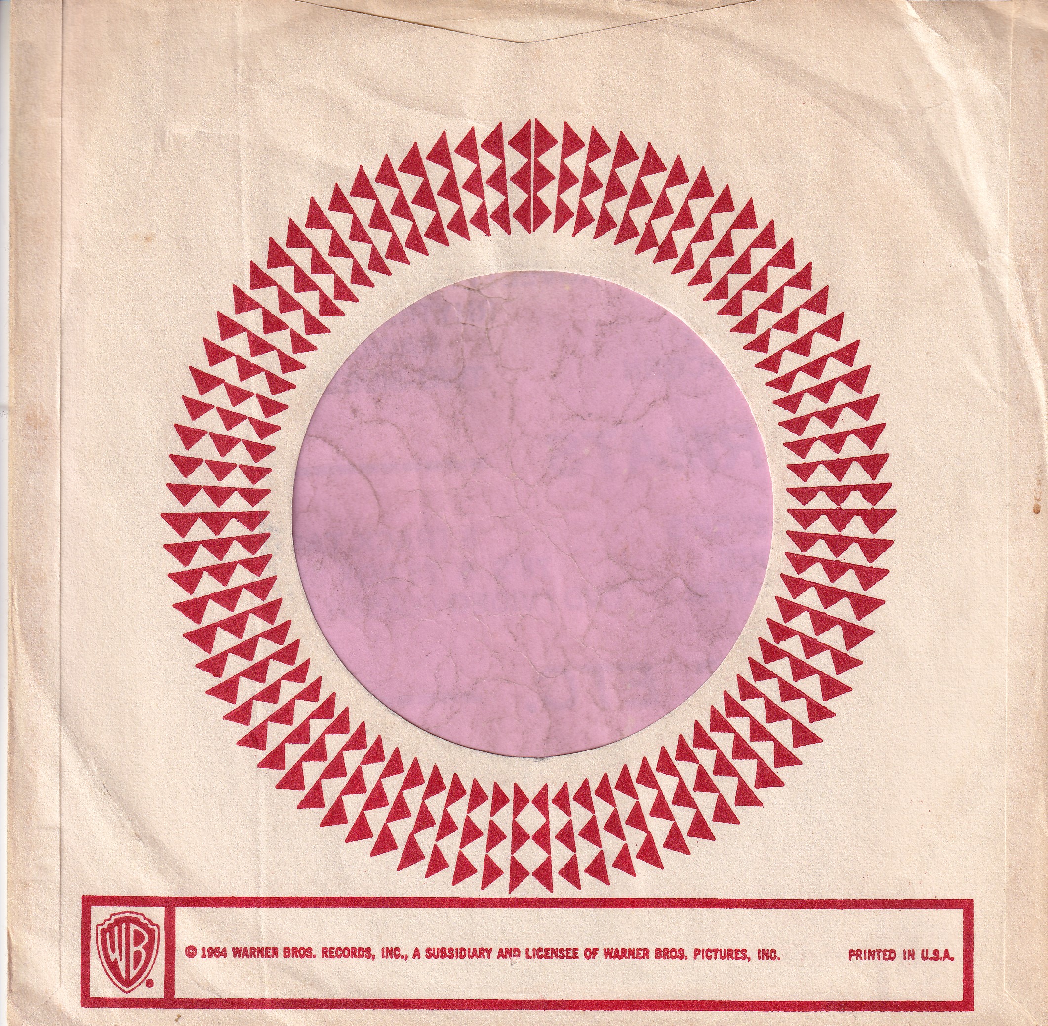 Warner Bros. Records U.S.A. Short Box With Large Print Cut Straight With A Notch Company Sleeve 1964 – 1968